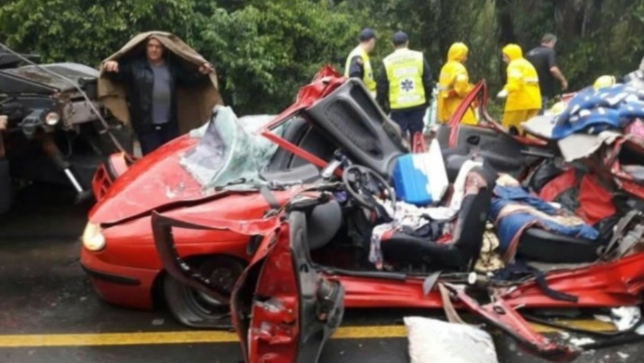 El siniestro ocurrió en la ruta BR-470, a la altura del kilómetro 184, Alto Valle de Itajaí, cuando uno de los acoplados de un camión se desprendió y aplastó al vehículo con chapa argentina, un Renault Megane rojo.