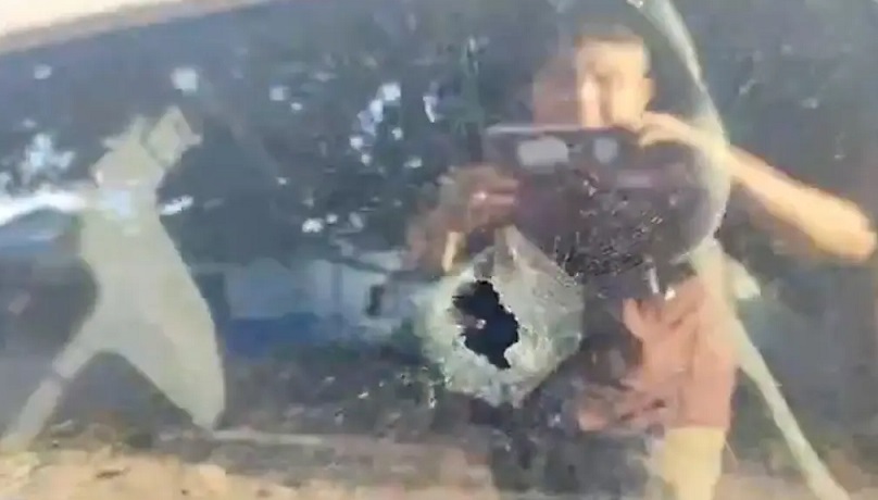 En el registro de video que publicó, se puede ver que el vidrio de la ventanilla trasera derecha fue perforado por un proyectil, que luego de atravesar el habitáculo, terminó saliendo del vehículo por la ventanilla del lado opuesto.
