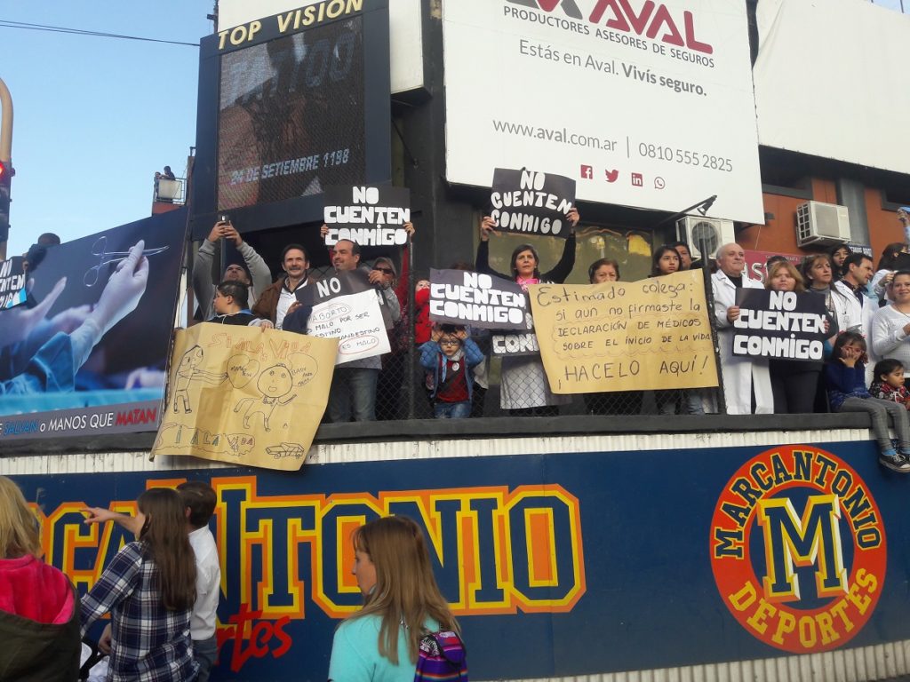 Otro sector que participó de la populosa movilización fueron los médicos, quienes manifestaron su postura en contra de la legalización al aborto con la frase “Conmigo no cuenten”.