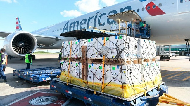El avión de American Airlines con las dosis aterrizó a las 15.36 al aeropuerto internacional de Ezeiza y este jueves arribará otro vuelo con 776.880 unidades.
