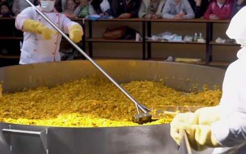 Los cocineros prepararon el plato regional en el súper Vea de la terminal de ómnibus, y celebraron cuando la balanza dio como resultado 448 kilográmos, ya que debía pesar más de 250 kilos.