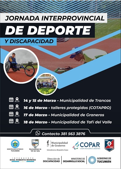 La jornada esta auspiciada por el municipio de Trancas, participan el Comité Paraolímpico Argentino (COPAR), Municipalidad de Graneros, Municipalidad de Tafí del Valle, Ministerio de Desarrollo Social y Cooperativa de los Talleres Protegidos (CoTaPro).
