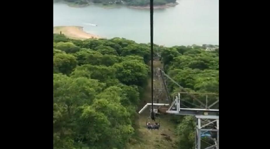 Los turistas debieron esperar unos minutos a que el sistema se restableciera para completar el viajes de las sillas por el ojo de agua. Pero pudo ser una tragedia.
