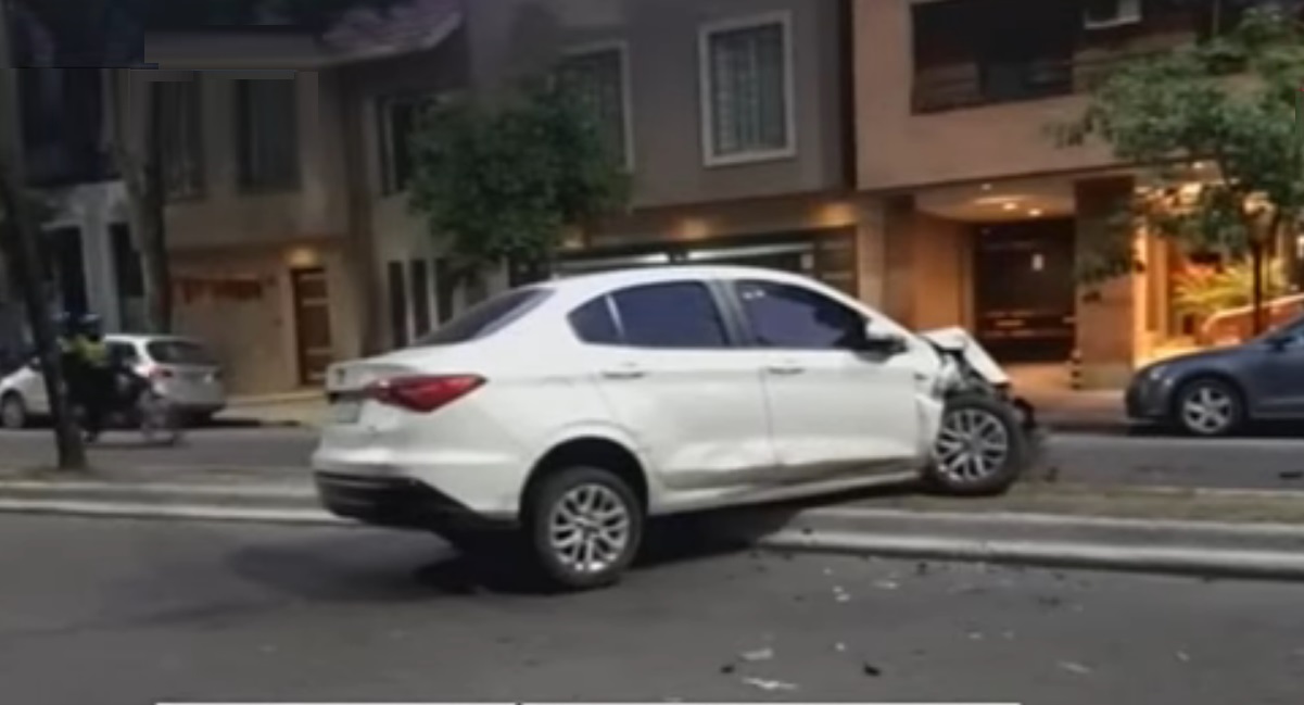 Luego del impacto, el coche fuera de control terminó subido a la platabanda, con el frente seriamente dañado, aunque sin lesionados entre los protagonistas del fuerte choque.
