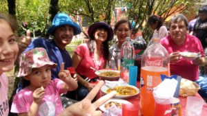 Los Pelucio no se privan de nada: ofrecen a los visitantes comidas regionales (picante de mondongo y empanadas) y bebidas ´para todos los gustos, papel picado, serpentinas, talco, y una gran orquesta que toca sin parar, mientras los bailarines demuestran sus habilidades. Un detalle para destacar: Todo es gratis!!!