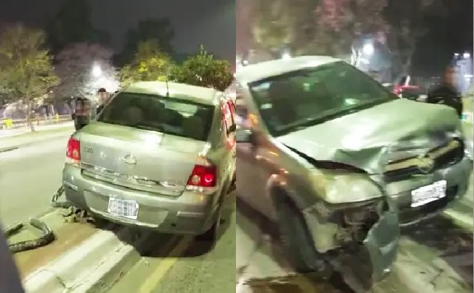 Un conductor perdió el control de su vehículo esta madrugada en la avenida Soldati al 300, frente al hotel Garden Park, se subió a la platabanda, arracando las protecciones metálicas, para terminar impactando violentamente contra un enorme macetón de hormigón, al que sacó de línea.