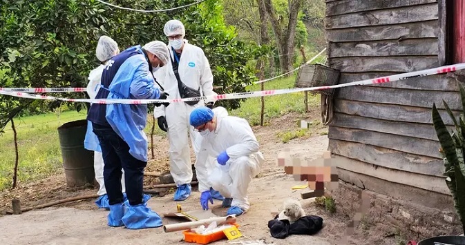 Una vez en el lugar, y mientras los policías realizaban el primer allanamiento, descubrieron el cuerpo también sin vida, de la pareja de la víctima. Estaba colgado de un árbol, con una cadena oxidada.