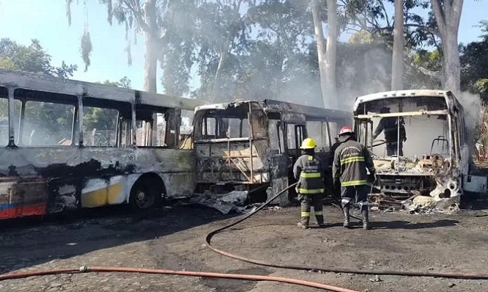 Por segunda vez en poco tiempo, un incendio consumió varios ómnibus de la Línea 7, que estaban estacionados en el predio ubicado en calle Colombia al 3.000.