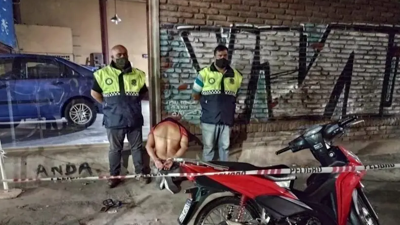 “Personal de la unidad que estaba destacado en jurisdicción de las Comisarías 1° y 2° realizando tareas preventivas e investigativas, observaron a un hombre que empujaba una moto, mirando en todas direcciones”, detalló.