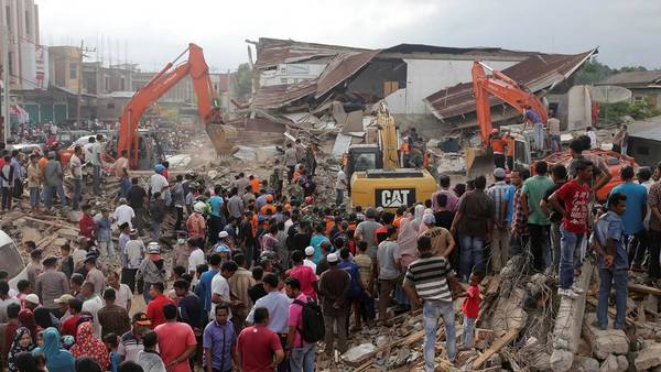 En Pidie, el minarete de una mezquita se desplomó sobre el templo barriendo parte de la estructura. Otros edificios quedaron reducidos a un amasijo de escombros, mientras los socorristas intentaban sacar a las personas atrapadas.