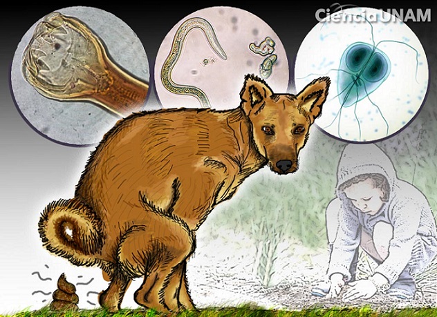 Cuando las heces fecales del perro se secan viajan en el aire y pueden ocasionar enfermedades como conjuntivitis, también se pueden adherir fácilmente a la comida que se consume en los puestos ambulantes y así ocasionar enfermedades bacterianas como salmonelosis o parasitarias.