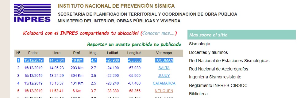El Instituto Nacional de Prevención Sísmica registro el movimiento sísmico ocurrido en nuestra provincia con una magnitud de 4.7 en la escala de Richter.