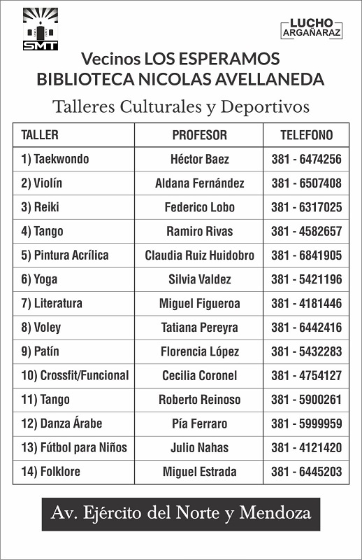 Por su parte, el coordinador de talleres culturales y deportivos de la Biblioteca Nicolás Avellaneda, Rolando Soria, sostuvo que la idea es darle a los vecinos una variedad de actividades para poder desarrollar.