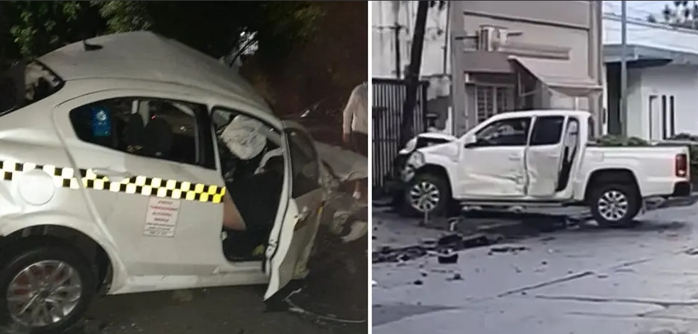 El golpe dio de lleno en el lateral izquierdo del taxi, en tanto que los cuatro ocupantes de la camioneta fueron atendidos por lesiones menores.