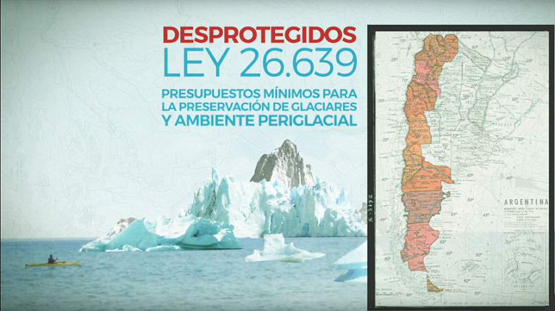 Argentina es uno de los pocos países del mundo que cuenta con miles de kilómetros cuadrados de glaciares en su territorio, abarcando 12 provincias y 39 cuencas hídricas, pero la mayor parte de estos territorios se encuentran desprotegidos por no implementarse correctamente la Ley de presupuestos mínimos para la preservación de glaciares.