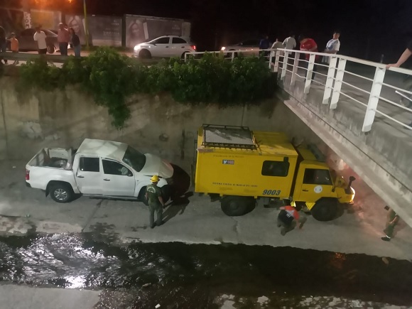 Personal de la Dirección de Defensa Civil de Tucumán participó anoche de un operativo para asistir a un automovilista que, tras sufrir un accidente vial en Avenida Alfredo Guzmán y Boulevard 9 de Julio, al sur de Yerba Buena, terminó con su camioneta en el lecho del Canal Sur.