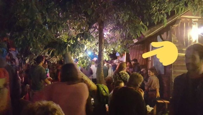 En una fotografía, también localizada en la fiesta de FM Alas, se alcanza a ver a un joven con rastas y chaleco a rayas verdes claras y oscuras. Observa con atención la performance de un DJ. Está de espaldas y probablemente es del 27 o 28 de julio.