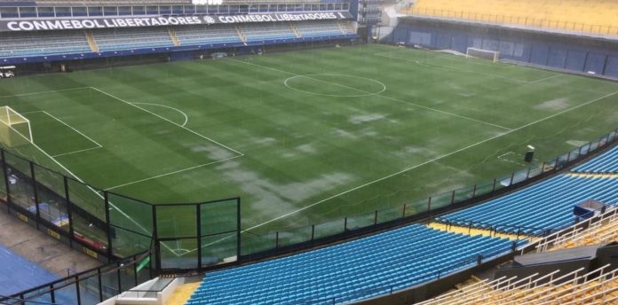 Representantes de Conmebol recorrieron el campo de juego en pleno temporal y volverán a hacerlo sobre el mediodía, un rato antes de las 13, hora prevista para abrir las puertas de la Bombonera y permitir el ingreso de los hinchas.