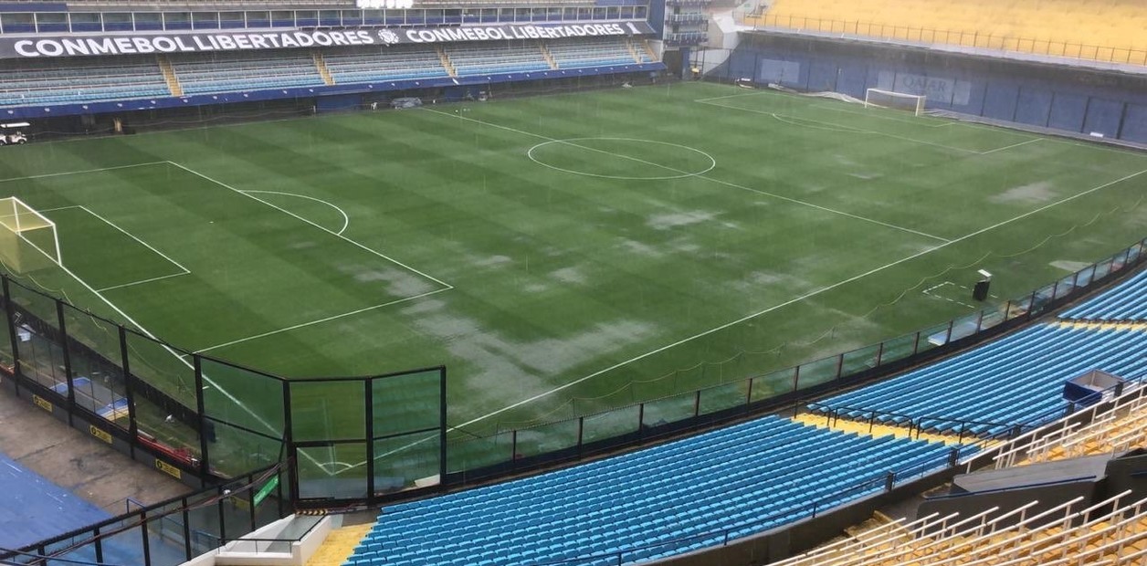 La primera prueba pareció haber sido superada. Un rato después de aquel primer chaparrón fuerte de las 7, la cancha lucía bien, al menos a simple vista. Apenas se veía un manchón de agua sobre el lateral izquierdo del arco que da al Riachuelo. No parecía un gran problema, pero esa no fue la última lluvia.