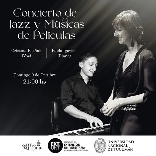 Con la calidad interpretativa a la que nos tienen acostumbrados, Cristina Bozñak y Pablo Igovich presentarán en el Centro Cultural Virla, este domingo desde las 21, el Concierto de Jazz y Músicas de Películas.