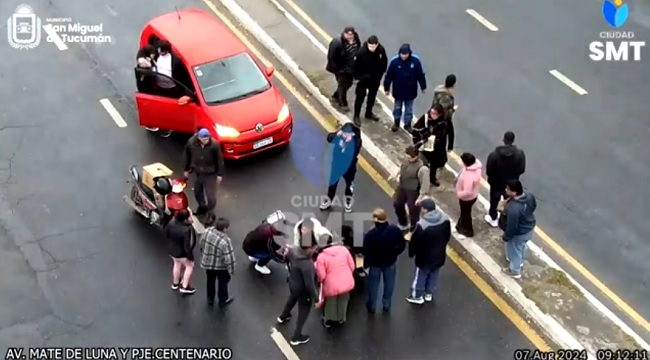 Una mujer y una niña fueron arrolladas esta mañana frente a la Maternidad y sufrieron lesiones. El incidente ocurrió en avenida Mate de Luna, casi pasaje Centenario. Toda la secuencia quedó grabada.