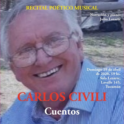 - “Cuentos”, de Carlos Civili. A las 19, en la Sala Lazarte, Lavalle 145 de la ciudad de San Miguel de Tucumán. Narración y piano: Maestro Julio Lazarte.