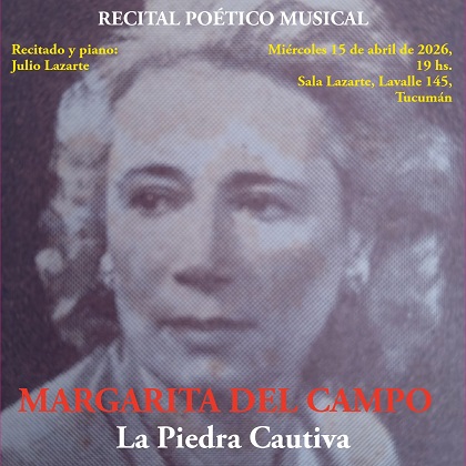 - “La piedra cautiva”, de Margarita del Campo. A las 19, en la Sala Lazarte, Lavalle 145 de la ciudad de San Miguel de Tucumán. Recitado y piano: Maestro Julio Lazarte.