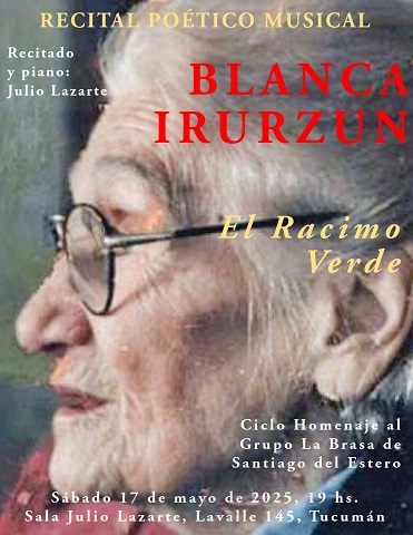 - Ciclo Homenaje al Grupo La Brasa de Santiago del Estero. “El racimo verde”, de Blanca Irurzun. A las 19, en la Sala Lazarte, de Lavalle 145, en San Miguel de Tucumán. Recitado y piano: Maestro Julio Lazarte.