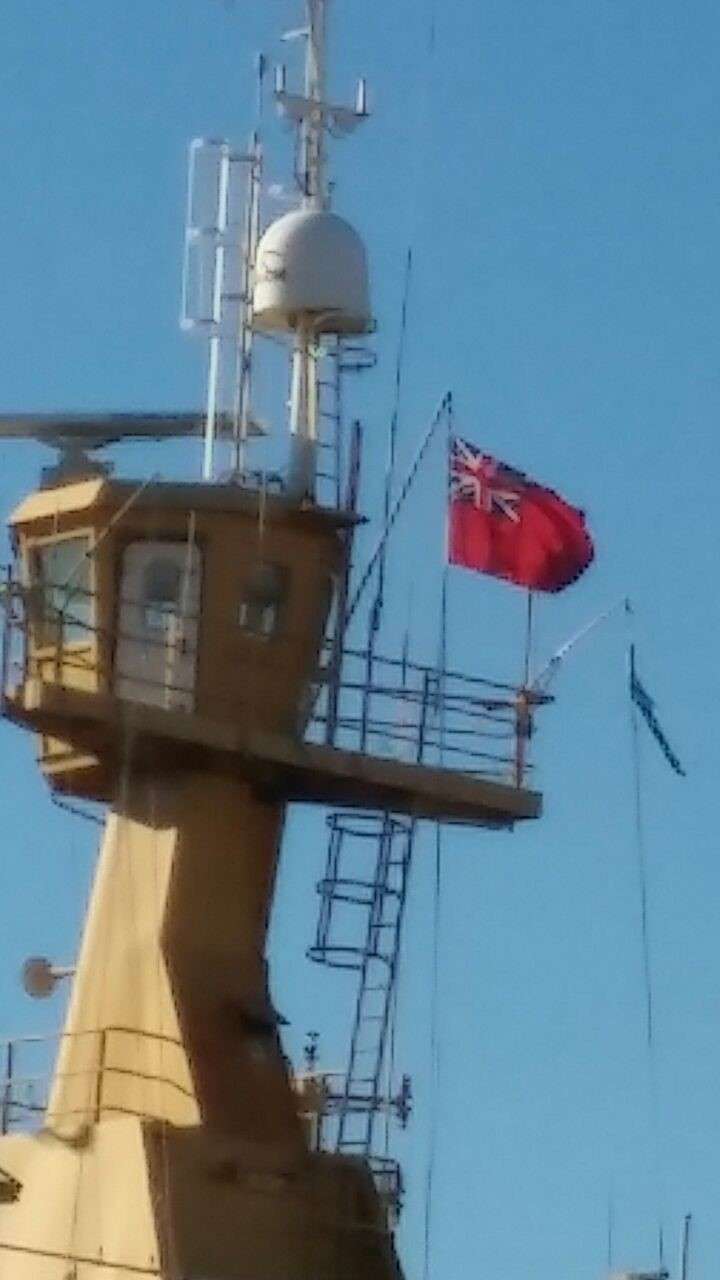 Al informarle que el Shackleton arribó al puerto de Montevideo con un pabellón de la marina mercante británica (que es de color rojo y tiene en su vértice superior izquierdo la bandera del Reino Unido), Domínguez expresó que “eso está dentro de lo legal” y que “las autoridades del puerto no pueden negarle la entrada”. En cuanto a las alteraciones de banderas, situación que no está del todo clara, dijo que “esa es una cuestión táctica, que habrá que analizarla particularmente”.