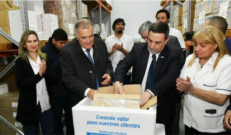 El gobernador, Osvaldo Jaldo, junto al ministro de Salud, Luis Medina Ruiz, visitaron el Depósito Central del Sistema Provincial de Salud para encabezar la recepción de 45.000 dosis de vacunas del dengue, que es una de las remesas pertenecientes a las 200 mil dosis que adquirió Tucumán para prevenir la enfermedad, provocada por el mosquito Aedes aegypti .