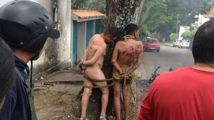 Las imágenes son impactantes. Por un lado, en Táchira, Venezuela, dos presuntos “colectivos” -fuerzas de choque paraestatales y parapoliciales- atados a un árbol, desnudos, con signos de haber sido golpeados. A su lado, una moto prendida fuego.