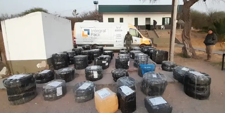A los gendarmes les llamaron la atención las 106 cubiertas valuadas en aproximadamente $1.229.600 que ocupaban el espacio de carga. También hallaron tres paquetes con el típico olor de la hoja de coca.