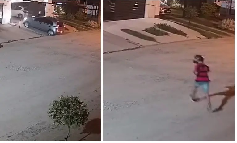 Una mujer fue víctima de un violento asalto anoche, cuando llegaba a su casa del barrio Ciudad Parque. El hecho quedó filmado por la cámara de seguridad de un vecino.