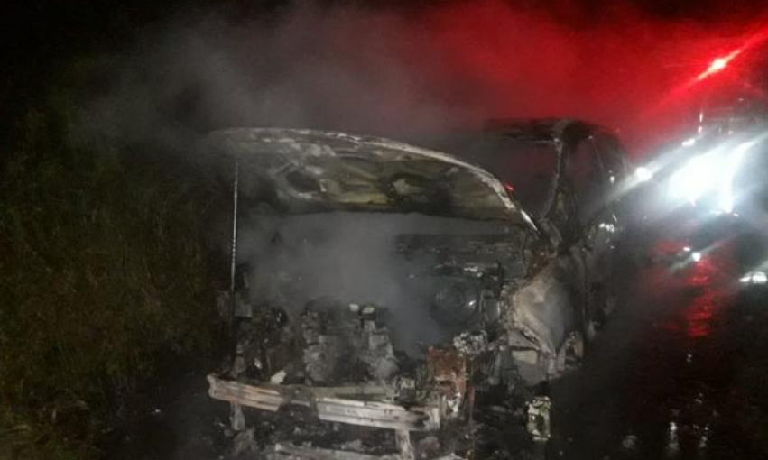 Posteriormente, efectivos de la comisaría Décima hallaron el rodado en la Autopista de Circunvalación, a la altura del Parque Industrial, totalmente quemado y sin sus ruedas.