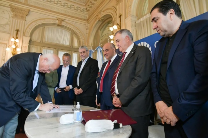 El gobernador, Osvaldo Jaldo, junto el jefe de Gabinete de la Nación, Juan Manzur, y al ministro de Desarrollo Territorial y Hábitat de la Nación, Jorge Ferraresi, encabezaron la firma de actas para la adjudicación y contratación de obras de la construcción de viviendas en la capital tucumana, el viernes pasado, en el Salón Blanco de la Casa de Gobierno. El proyecto del nuevo emprendimiento habitacional contará con 1.659 viviendas, 1.491 lotes con servicios y 50 locales comerciales.
