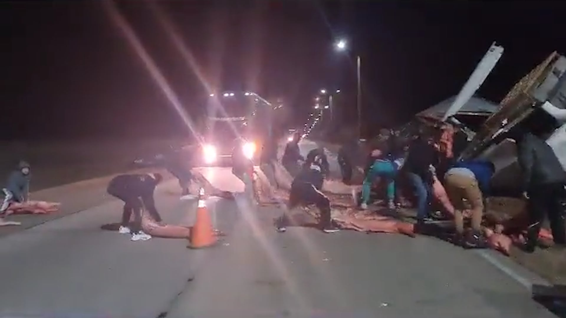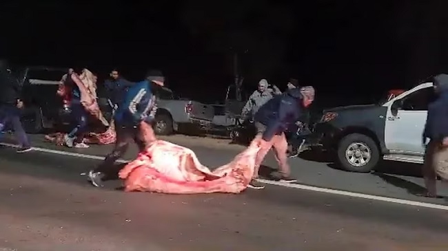 El momento de los robos quedó grabado en diferentes videos que luego circularon por las redes sociales. En las imágenes se ve cómo las personas agarran los pedazos que pueden y se los llevan arrastrándolos a lo largo de la ruta. Según se puede observar, la mayoría de los que participaron en el acto fueron hombres que utilizaron su fuerza para cargar con los cortes más grandes y pesados.